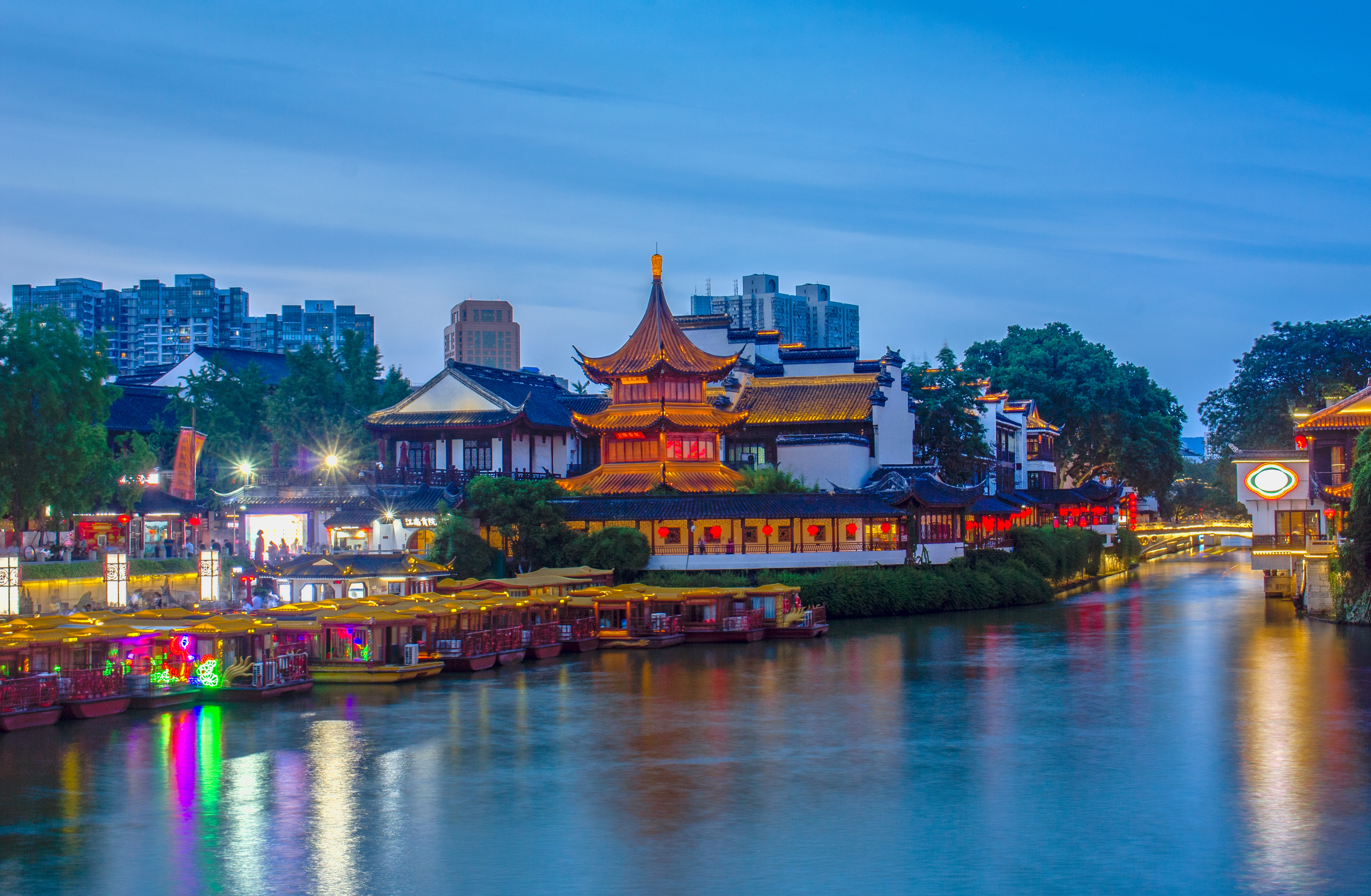 秦淮十里,金陵一梦。秦淮河-夫子庙一带,是南京最繁华的地方,承载着这座城市独特的记忆。秦淮河是南京的母亲河,夫子庙,为中国四大文庙之一,乘船夜游淮河,逛一逛古街市集,感受熠熠生辉的金陵风情。