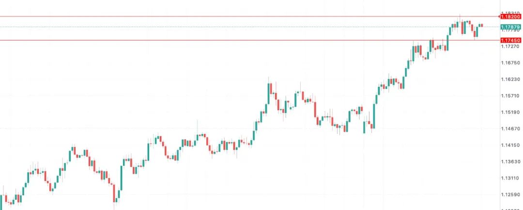 然而,需要谨慎的是,在最近鲍曼和沃勒呼吁7月降息之后,市场对7月降息的预期概率已稳定在20%,但风险在于,如果就业数据意外上行,比如非农就业数据接近20万人,那么这个预期就会重新归零。因此,当前市场上其实也仍存在潜在对冲需求。即表示尽管美国6月非农就业报告符合市场放缓预期,但市场对于高收益对冲需求仍然对美元指数或提供部分支撑。而如若叠加6月非农就业报告打破市场所有悲观预期,则需紧惕欧元回撤至1.1745目标区域的下行风险。同时,如若该区域被有效突破,则欧元回调测试1.1700的技术风险将随之上升。